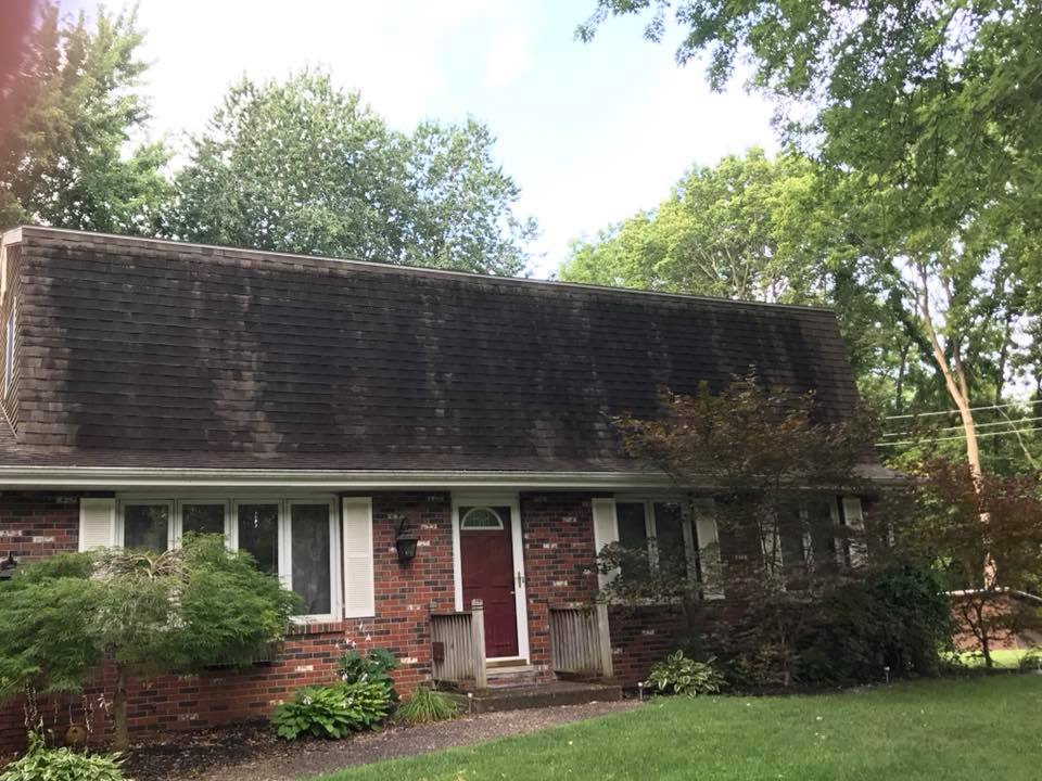 This home had sever green algae built up on the shingles, which when left uncleaned can damage your roof for life. Once we applied our cleaner and soft washed the roof, we restored the shingles. See the before and after photos from this roof cleaning in Decatur, IL!